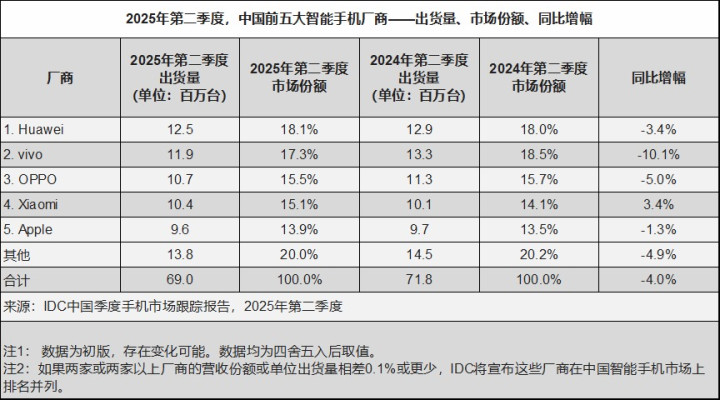 (图源:IDC中国季度手机市场跟踪报告,2025年第二季度)
